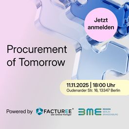 Am 11. November 2025 ab 18:00 Uhr öffnen FACTUREE und der BME Region Berlin-Brandenburg die Türen für die zweite Ausgabe von „Procurement of Tomorrow“ – dem Networking-Event für moderne Einkäufer:innen, die heute schon an morgen denken.