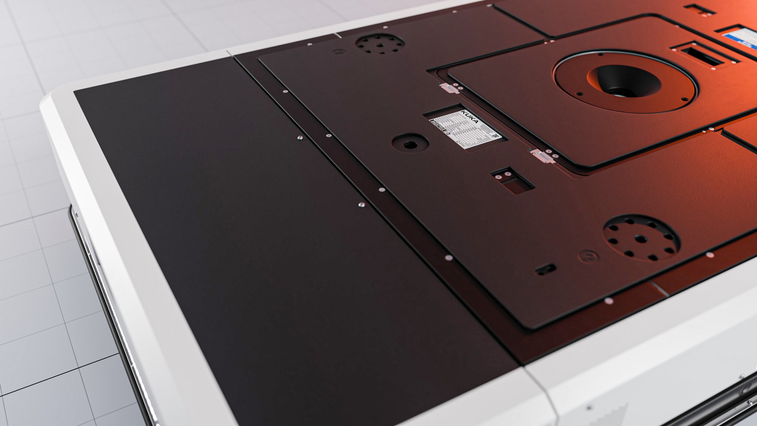 (Wartung leicht gemacht: Wenn etwas getauscht werden muss, kommt man durch eine Wartungsluke einfach ins Innere der Plattform. Bild: Kuka)